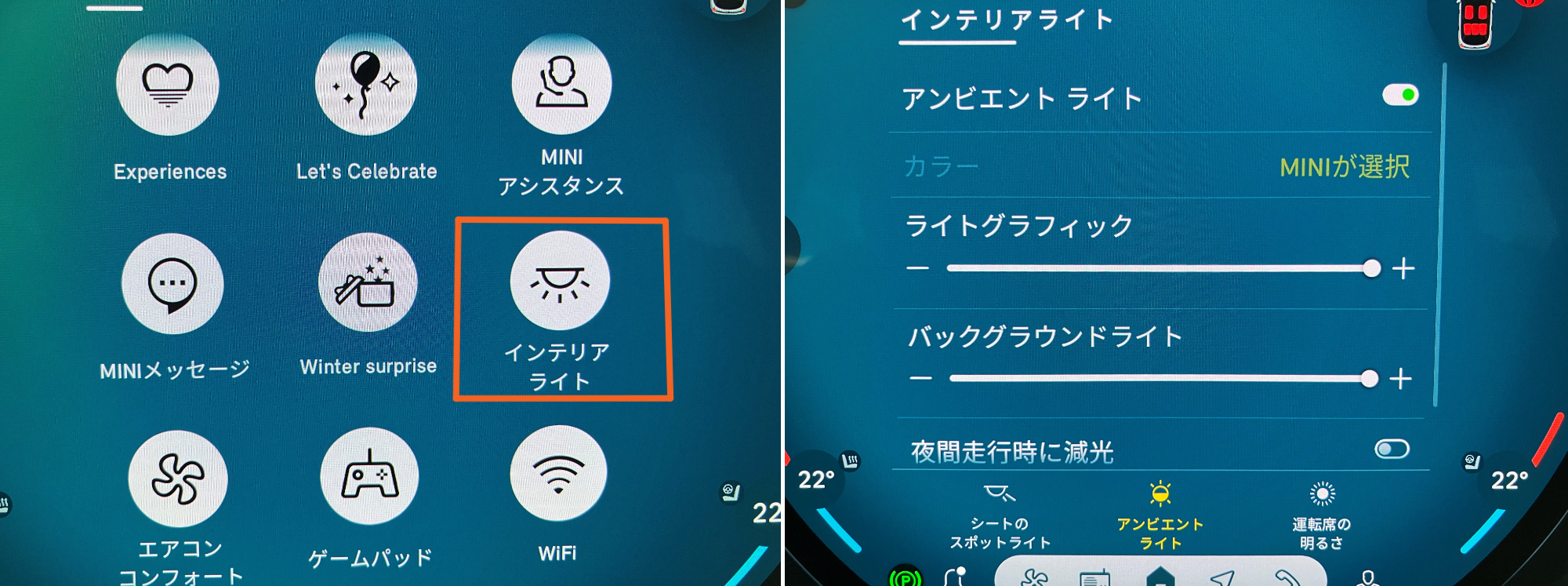 その中にある《ライトグラフィック》《バックグラウンドライト》を